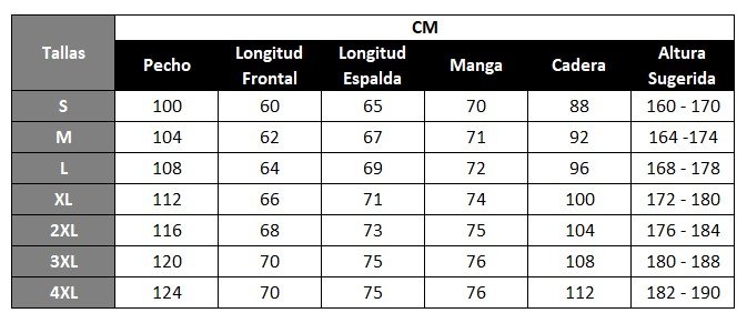 Guia de Tallas: